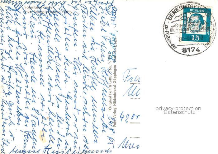 72968874 alte Postkarte Benediktbeuern Salesianerkloster Fliegeraufnahme postalisch gelaufen Erhaltung siehe scans [NatalD47] KatCode: 11110009173113