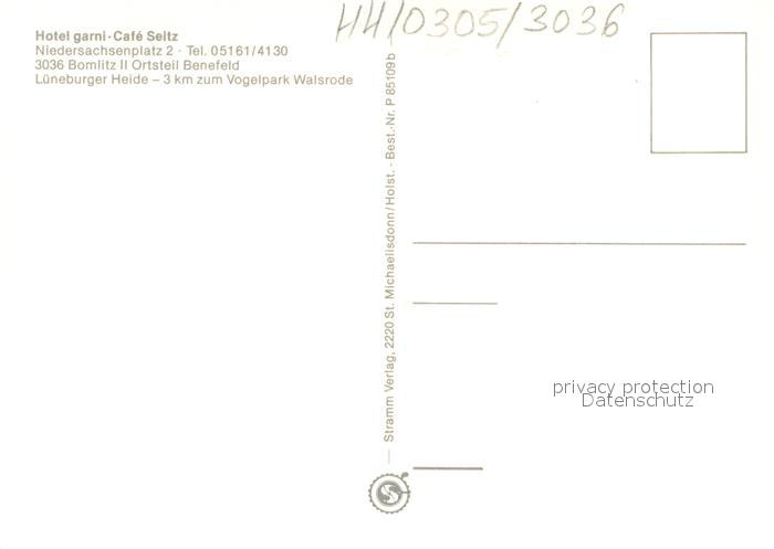 73642510 Benefeld Hotel garni Cafe Seitz Gaststube Bar Park postalisch nicht gelaufen Erhaltung siehe scans [WerneD78] KatCode: 11110003358004