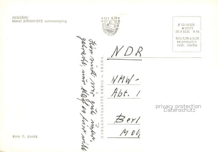 Benesov u Prahy Motel Konopiste autocamping postalisch nicht gelaufen Erhaltung siehe scans [FriedD77]