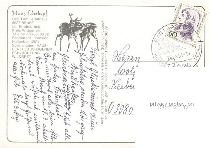 73836469 alte Postkarte Benfe Haus Ederkopf Fliegeraufnahme postalisch gelaufen Erhaltung siehe scans [FriedD77] KatCode: 11110005970012