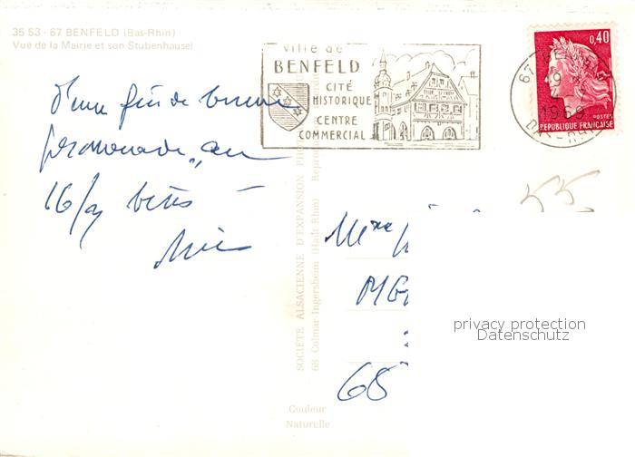 13826378 Benfeld 67 Alsace Vue de la Mairie et son Stubenhausel postalisch gelaufen Erhaltung siehe scans [FriedD77] carte postale Frie Katcode 11170067567028