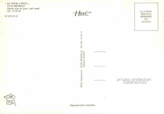 12892726 Benfeld Bas-Rhin Au Four a Pizza postalisch nicht gelaufen Erhaltung siehe scans [AndreD76] KatCode: 11170067567028