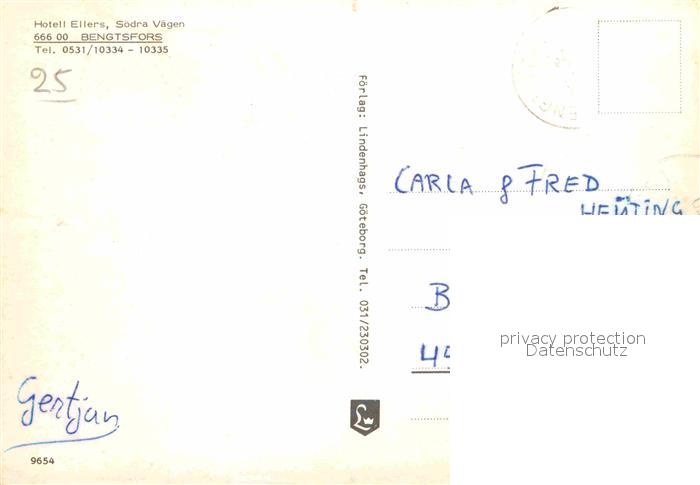old postcard Bengtsfors Hotell Ellers Soedra Vaegen postalisch gelaufen Erhaltung siehe scans [WerneD78]