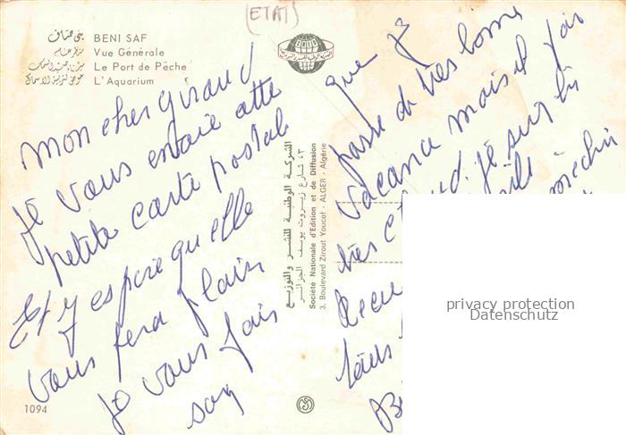 74015128 Beni-Saf Algerie Blick ueber die Stadt Kuestenpanorama Fischerhafen Luftaufnahme Aquarium postalisch nicht gelaufen Erhaltung siehe scans [FriedD77] KatCode: 18030