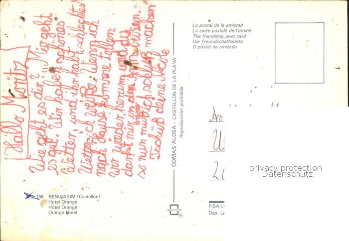 Benicasim Fliegeraufnahme Hotel Orange postalisch nicht gelaufen Erhaltung siehe scans