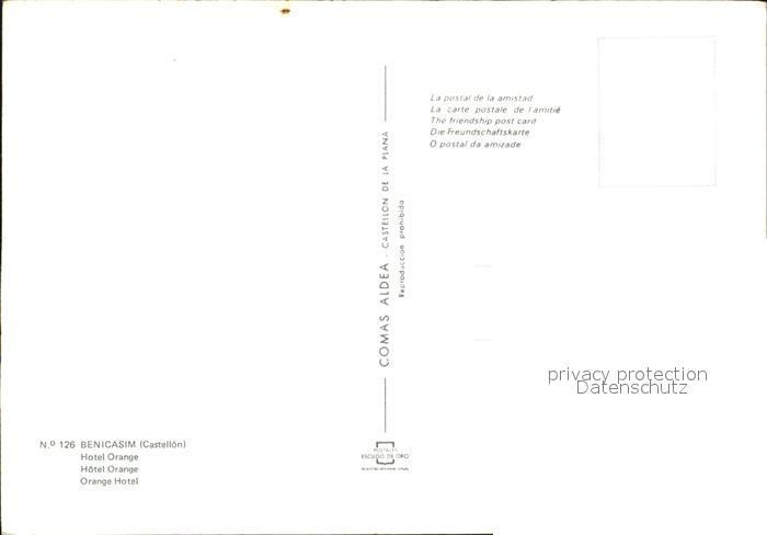 Benicasim Hotel Orange postalisch nicht gelaufen Erhaltung siehe scans [LiesaD40 kv019box]