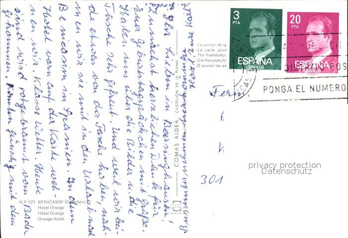 old postcard Benicasim Hotel Orange postalisch gelaufen Erhaltung siehe scans