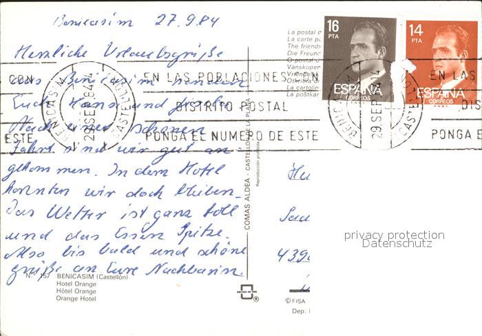 old postcard Benicasim Hotel Orange postalisch gelaufen Erhaltung siehe scans