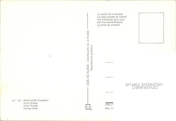 Benicasim Hotel Orange postalisch nicht gelaufen Erhaltung siehe scans