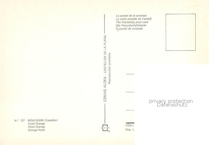 Benicasim Hotel Orange postalisch nicht gelaufen Erhaltung siehe scans [NatalD47]
