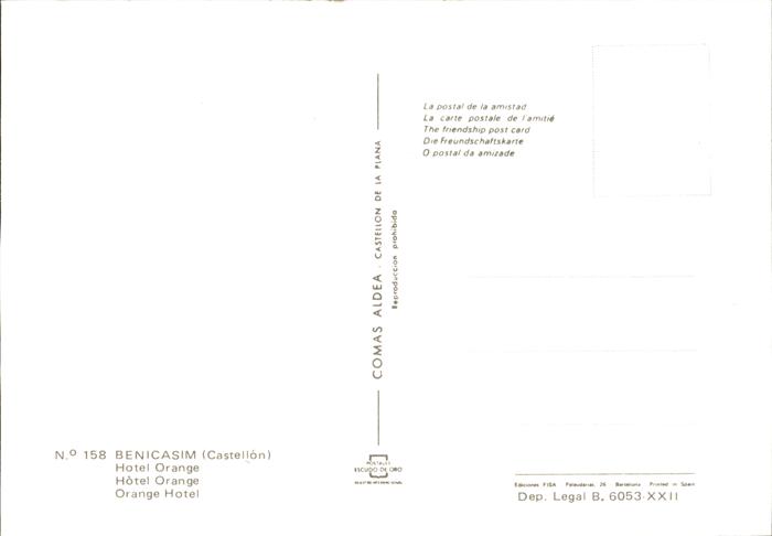 Benicasim Hotel Orange Arena Fliegeraufnahme postalisch nicht gelaufen Erhaltung siehe scans