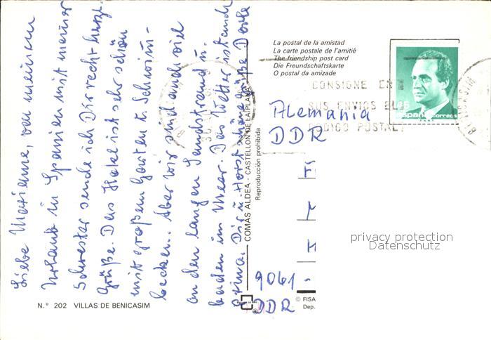 old postcard Benicasim Strandansicht bei Nacht postalisch gelaufen Erhaltung siehe scans