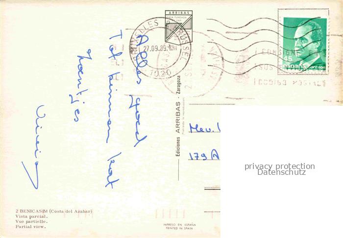 14114436 Benicasim Valenciana ES Vista parcial postalisch gelaufen Erhaltung siehe scans [FriedD77] old postcard Frie Katcode 11510
