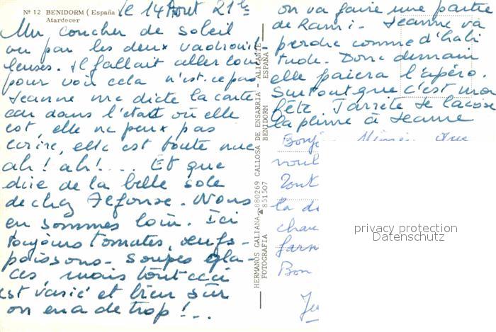 Benidorm Atardecer postalisch nicht gelaufen Erhaltung siehe scans [WerneD78]