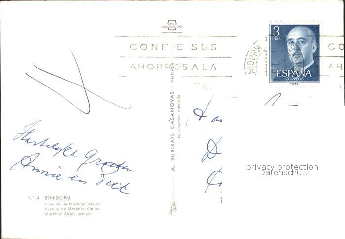 old postcard Benidorm Avenida de Martinez Alejos postalisch gelaufen Erhaltung siehe scans