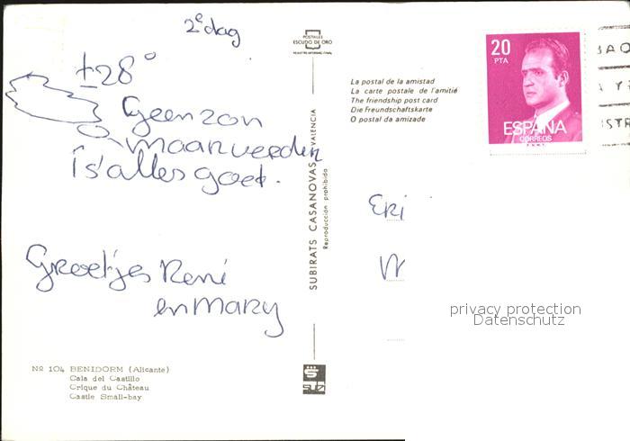 old postcard Benidorm Cala del Castillo Playa postalisch gelaufen Erhaltung siehe scans