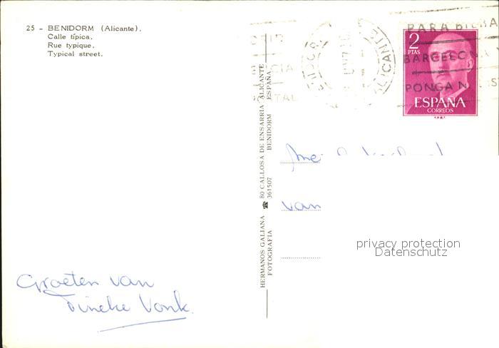 old postcard Benidorm Calle Tipica postalisch gelaufen Erhaltung siehe scans