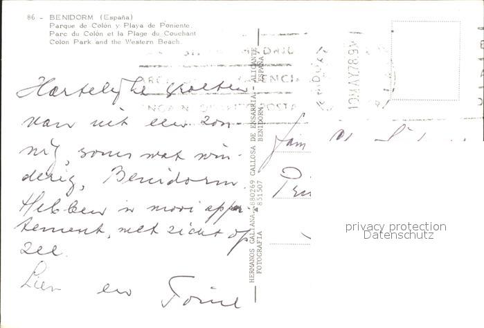 old postcard Benidorm Colon Park Western Beach postalisch gelaufen Erhaltung siehe scans