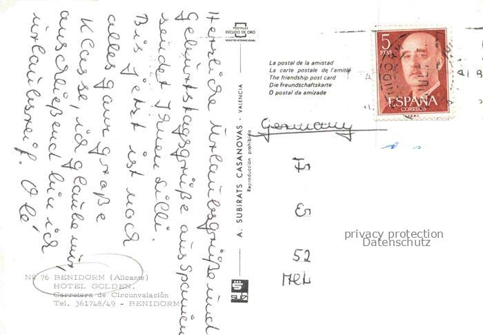 74155976 old postcard BENIDORM ES Hotel Golden postalisch gelaufen Erhaltung siehe scans [WerneD78] KatCode: 11510