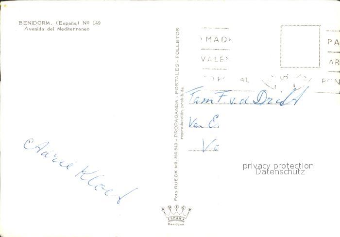 old postcard Benidorm Fliegeraufnahme Hauptstrasse postalisch gelaufen Erhaltung siehe scans