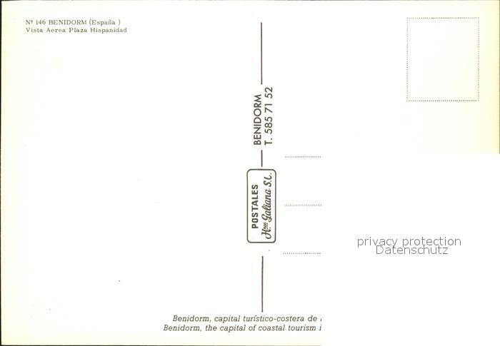 Benidorm Fliegeraufnahme Plaza Hispanidad postalisch nicht gelaufen Erhaltung siehe scans