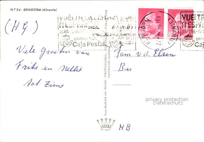 old postcard Benidorm Gasse Treppen postalisch gelaufen Erhaltung siehe scans