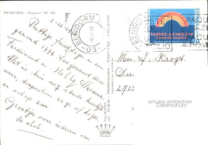 old postcard Benidorm Gesamtansicht mit Strand und Hotels postalisch gelaufen Erhaltung siehe scans