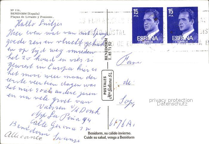 old postcard Benidorm Gesamtansicht mit Strand postalisch gelaufen Erhaltung siehe scans