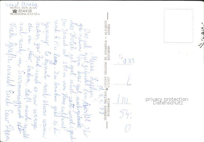 old postcard Benidorm Hotel Don Juan postalisch gelaufen Erhaltung siehe scans