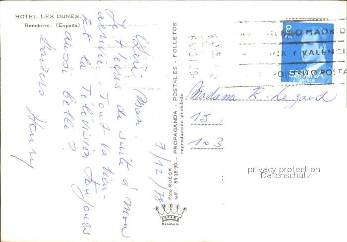 old postcard Benidorm Hotel les Dunes postalisch gelaufen