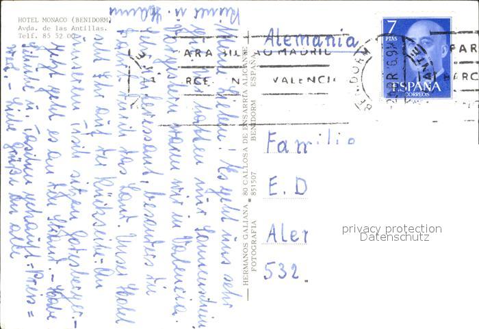 old postcard Benidorm Hotel Monaco mit Pool postalisch gelaufen Erhaltung siehe scans