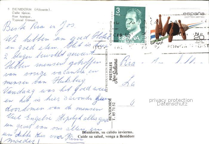 old postcard Benidorm Kleine Gasse postalisch gelaufen Erhaltung siehe scans