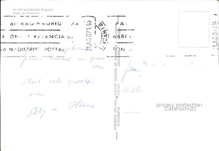 old postcard Benidorm Playa de Poniente postalisch gelaufen Erhaltung siehe scans