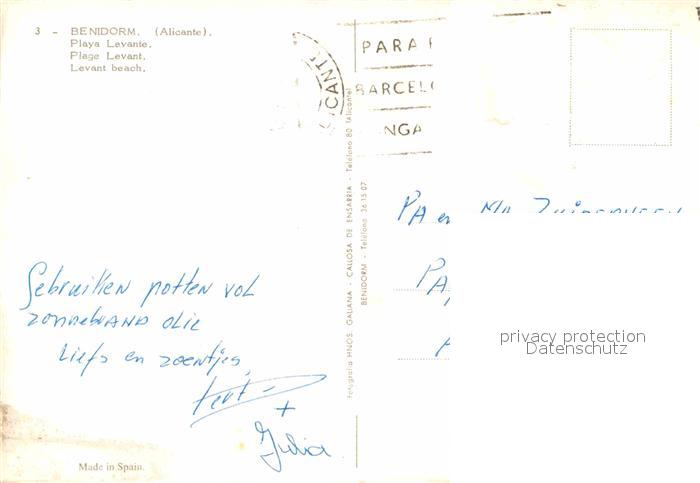 old postcard Benidorm Playa Levante postalisch gelaufen Erhaltung siehe scans [NatalD47]