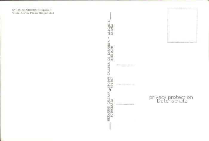 Benidorm Plaza Hispanidad Fliegeraufnahme postalisch nicht gelaufen Erhaltung siehe scans
