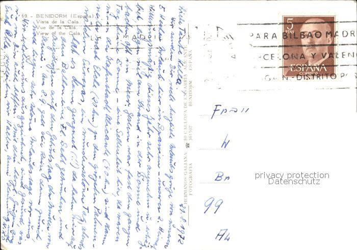old postcard Benidorm Strand postalisch gelaufen Erhaltung siehe scans