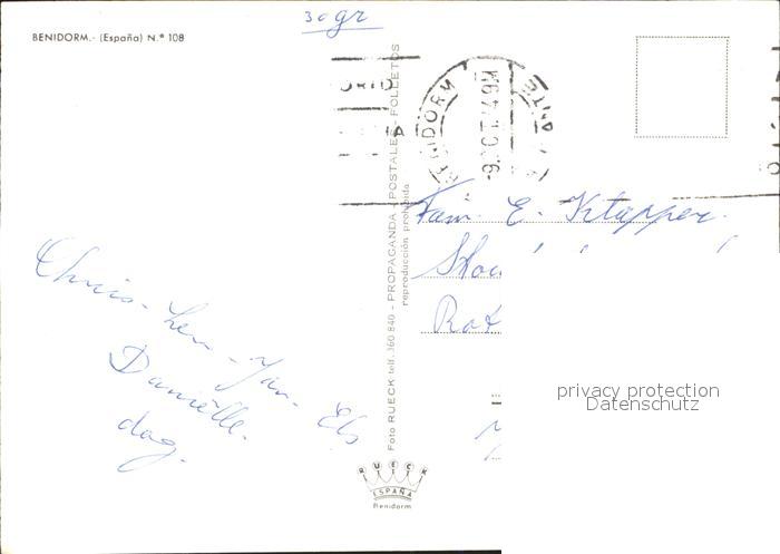 old postcard Benidorm Strand postalisch gelaufen Erhaltung siehe scans