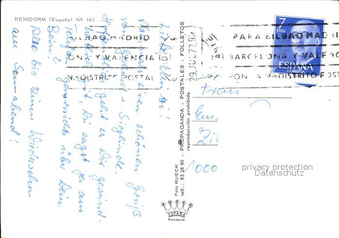 old postcard Benidorm Strand Fliegeraufnahme postalisch gelaufen Erhaltung siehe scans [WerneD78]
