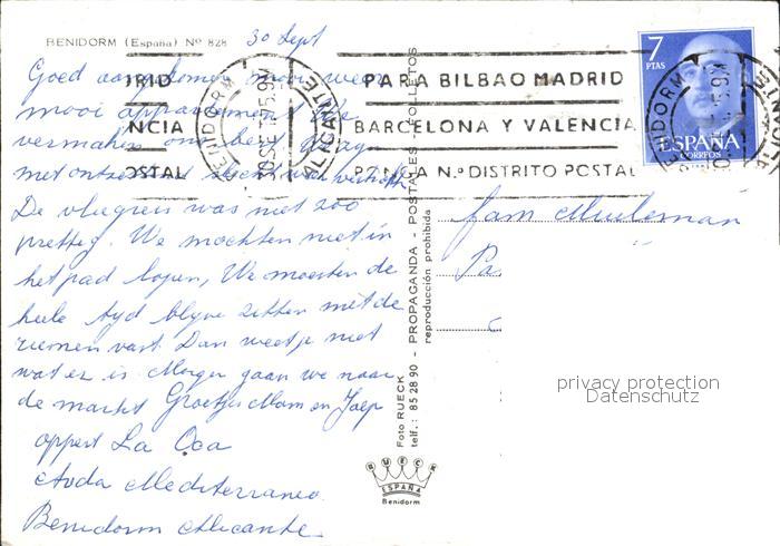 old postcard Benidorm Strand Hotels postalisch gelaufen Erhaltung siehe scans