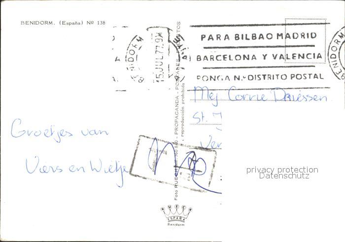 old postcard Benidorm Strand Hotels postalisch gelaufen Erhaltung siehe scans