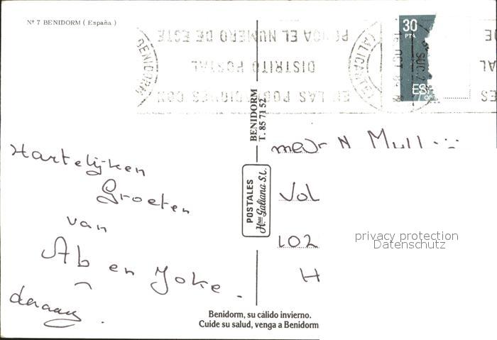 old postcard Benidorm Strand Promenade postalisch gelaufen Erhaltung siehe scans