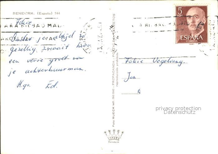 old postcard Benidorm Strand Sonnenuntergang Kueste postalisch gelaufen Erhaltung siehe scans