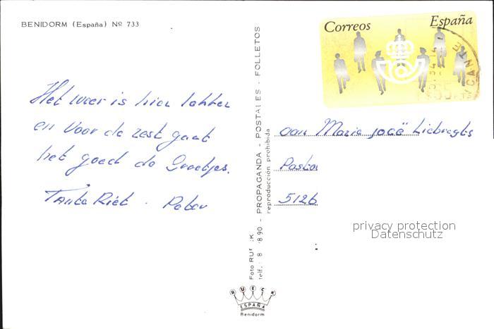 old postcard Benidorm Strandpromenade postalisch gelaufen Erhaltung siehe scans