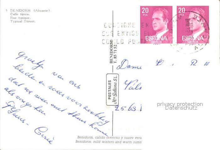 old postcard Benidorm Typical Street postalisch gelaufen Erhaltung siehe scans