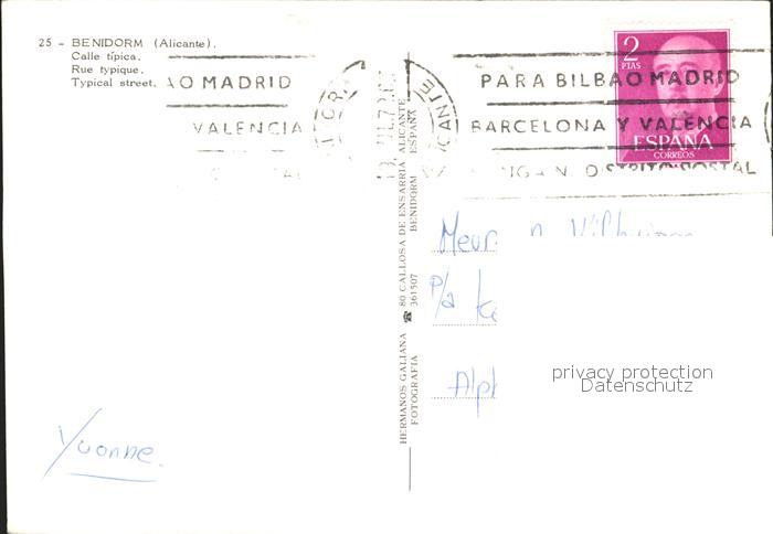 old postcard Benidorm Typical street postalisch gelaufen Erhaltung siehe scans