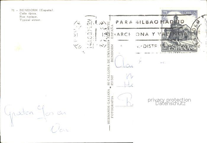 old postcard Benidorm Typische Gasse postalisch gelaufen Erhaltung siehe scans