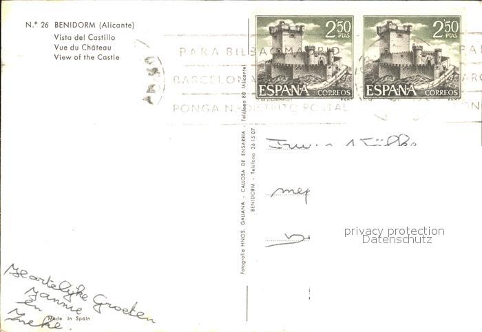 old postcard Benidorm Vista del Castillo postalisch gelaufen Erhaltung siehe scans [AndreD76]