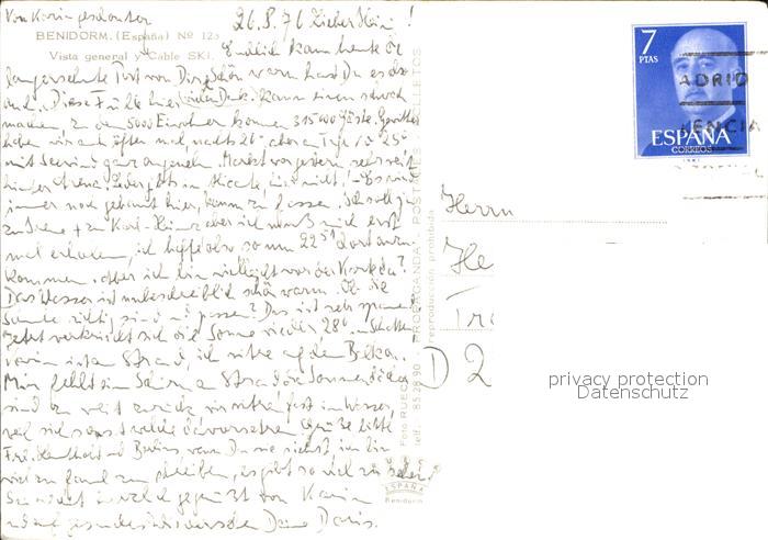 old postcard Benidorm Vista general y Cable SKI postalisch gelaufen Erhaltung siehe scans