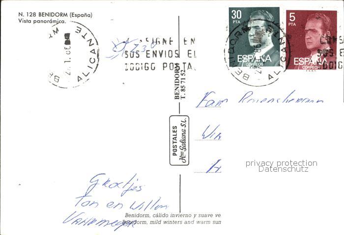 old postcard Benidorm Vista panoramica postalisch gelaufen Erhaltung siehe scans