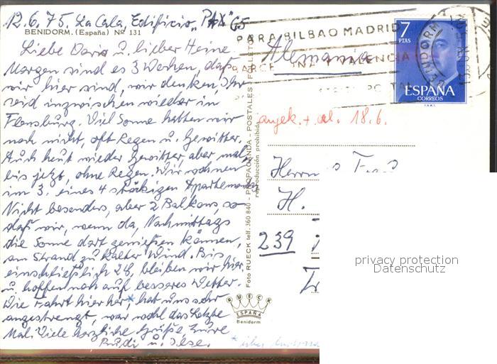 old postcard Benidorm Vista parcial Playa Strand postalisch gelaufen Erhaltung siehe scans